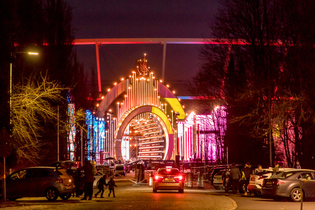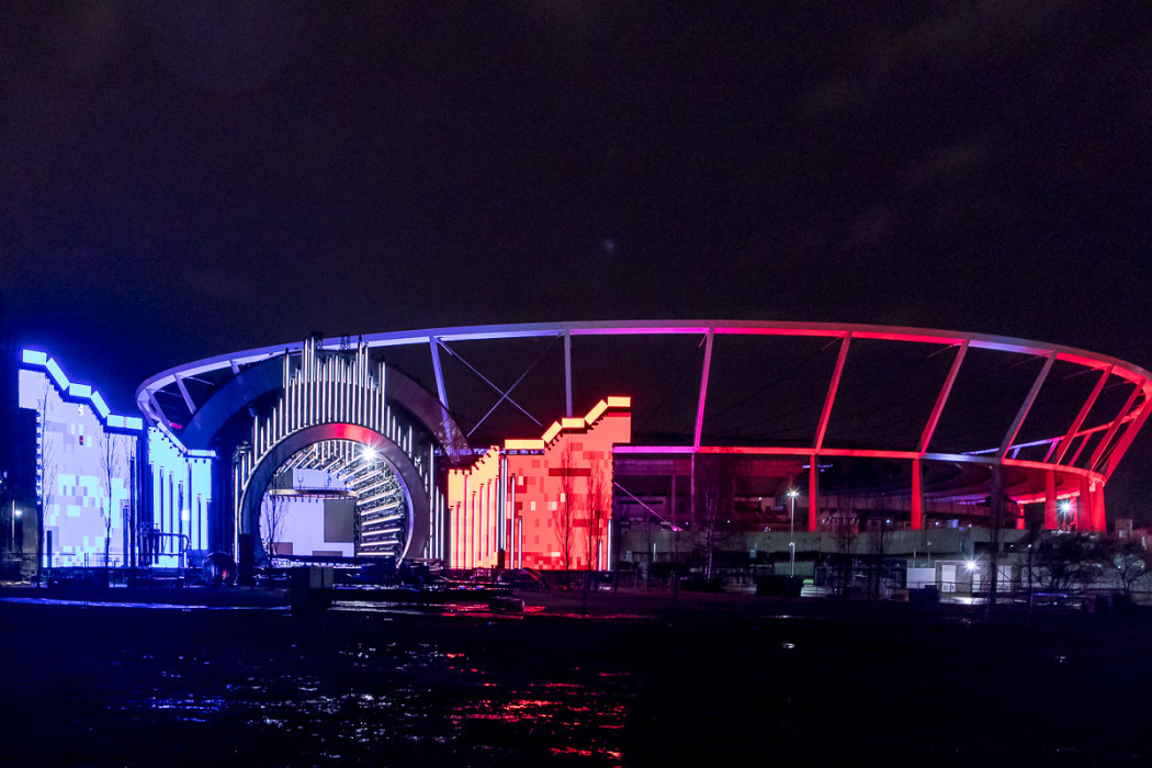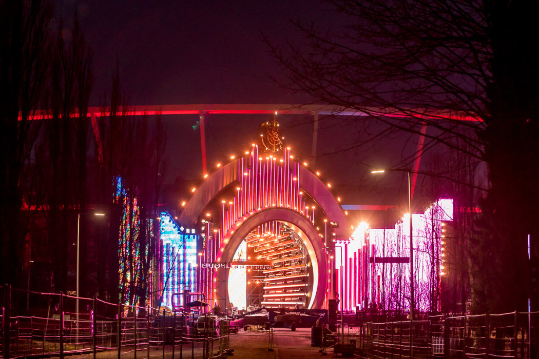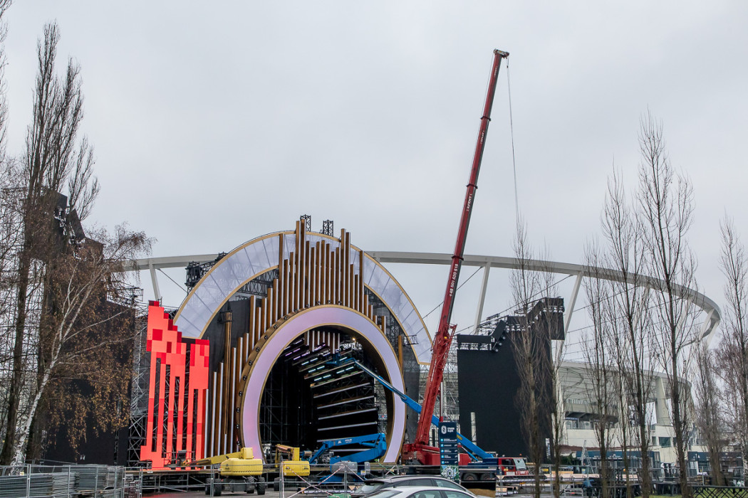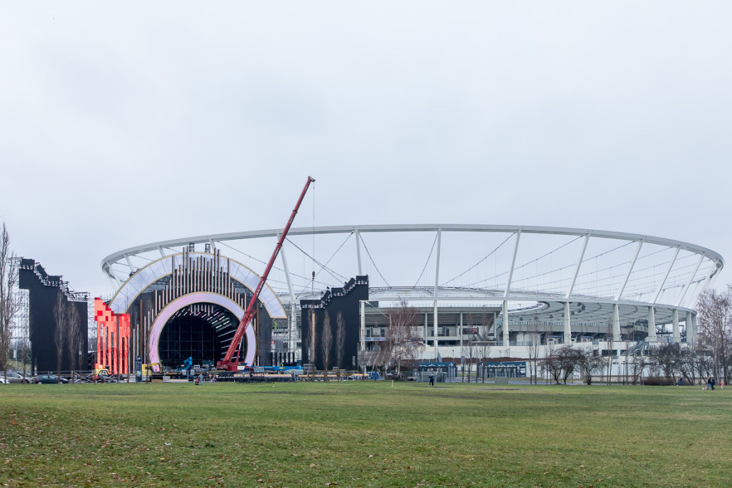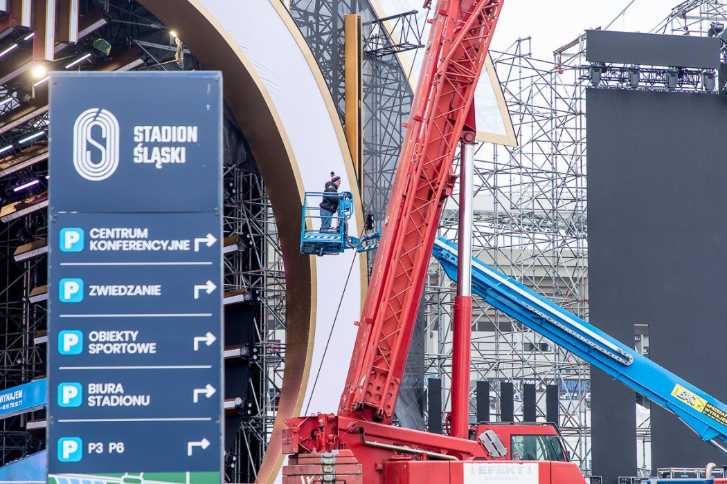 Sylwestrowa Moc Przebojów - budowa sceny przed Stadionem Śląskim