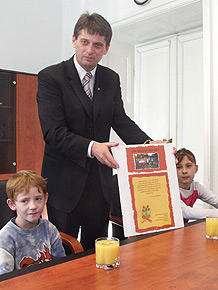Dzieci z Ośrodka Pomocy Dzieciom i Rodzinie w Rudzie Śląskie odwiedziły dzisiaj wicemarszałka Województwa Śląskiego Jana Grelę. Ola i Paweł wraz z opiekunem przyszły podziękować za bilety na mecz piłki nożnej Polska–Anglia przekazane bezpłatnie dla 20 wychowanków placówki.