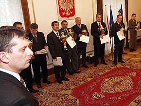 Dzisiaj wicemarszałek Województwa Śląskiego Jan Grela wręczył puchary w X edycji „Sportowego Turnieju Miast i Gmin 2004”.