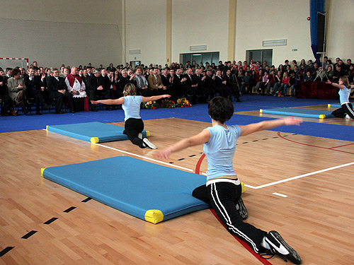 W nowej sali prezentowano puchary zdobyte przez uczniów Zespołu Szkół Rolniczych  Inscenizacja idei i historii igrzysk olimpijskich  Uroczystość zakończył pokaz aerobiku