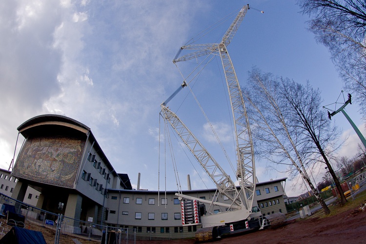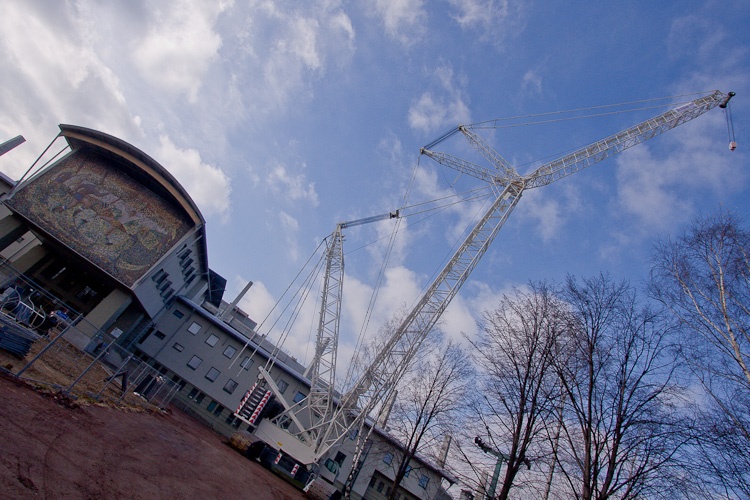 Jeden z największych dźwigów w Europie CC 2800 na budowie Stadionu Śląskiego