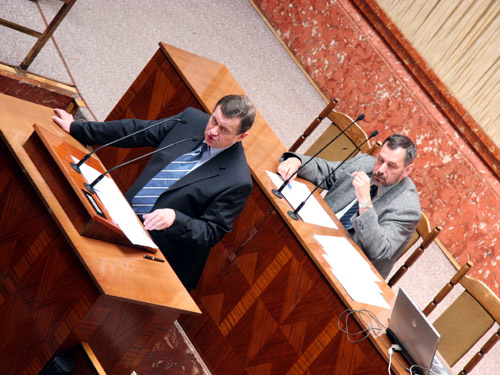 Sala Sejmu Śląskiego. Narada dyrektorów SP ZOZ.  Marszałek Michał Czarski przedstawił zamierzenia zarządu Województwa dotyczące ochrony zdrowia