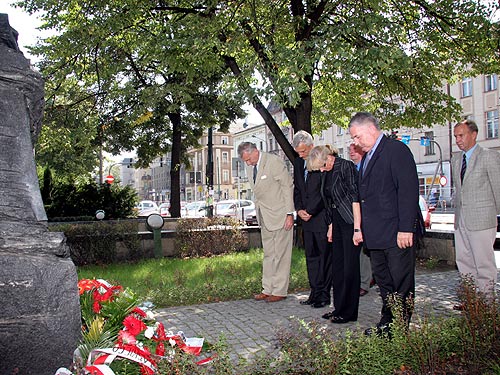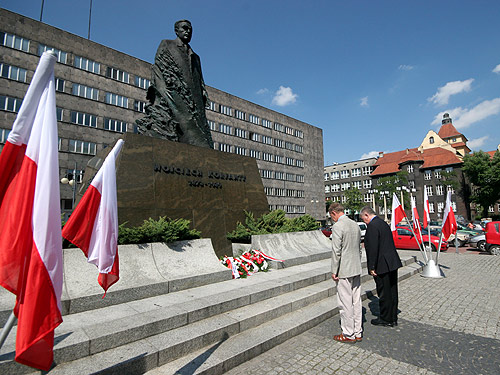 Następnie przedstawiciele samorządów przeszli pod pomnik Wojciecha Korfantego, gdzie w obecności Wojewody Śląskiego Tomasza Pietrzykowskiego złożyli hołd przywódcy powstań. Dzisiejsza rocznica powstań zbiegła się z 67 rocznicą jego śmierci w 1939 roku.