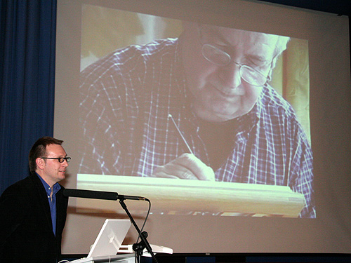 W czasie wystawy można było „spróbować druku” przy pomocy nowego kroju pisma.  Od lewej Henryk Sakwerda, dr Artur Frankowski i marszałek Michał Czarski  Henryk Sakwerda w rozmowie z profesorem Tadeuszem Sławkiem  Wykład dr. Artura Frankowskiego nt. elementów regionalnych w polskiej typografii