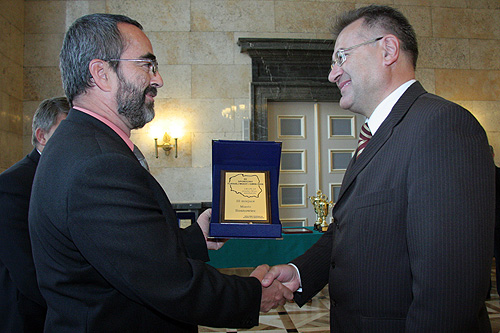 Dyplomy dla przedstawicielek gmin Orzesze i Żywiec  Marszałek Janusz Moszyński wręcza nagrodę dla przedstawiciela Sosnowca.  Gratulacje od Mariana Ormańca dla gminy Blachowania.