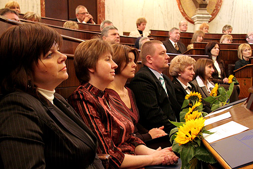 Podczas uroczystości w Sali Sejmu Śląskiego nagrody wyróżniającym się pedagogom wręczył członek Zarządu Województwa Śląskiego Marian Ormaniec.