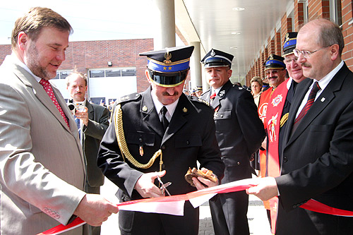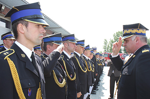 „Jestem pełen uznania dla straży pożarnej, której profesjonalizm i skuteczność miałem okazję wielokrotnie obserwować w trakcie akcji, często w skrajnie trudnych okolicznościach” – powiedział uczestniczący w uroczystości Marszałek Województwa Śląskiego Bogusław Śmigielski