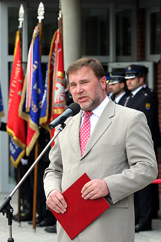 „Jestem pełen uznania dla straży pożarnej, której profesjonalizm i skuteczność miałem okazję wielokrotnie obserwować w trakcie akcji, często w skrajnie trudnych okolicznościach” – powiedział uczestniczący w uroczystości Marszałek Województwa Śląskiego Bogusław Śmigielski