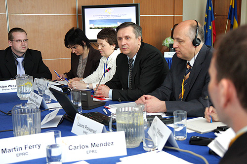 Przedstawiciele European Policy Research Centre zaprezentowali zagadnienia finansowania zrównoważonego rozwoju w programach unijnych. Przedstawiono też postęp we wdrażaniu programów unijnych w innych regionach Europy. Dyskutowano o możliwościach wymiany „dobrych praktyk” w rozwiązywaniu problemów pojawiających się podczas ich realizacji.
