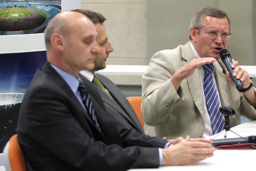 W konferencji podsumowującej dwudniowe spotkanie szefów struktur przygotowań do EURO 2012 w Polsce uczestniczyli: Andrzej Bogucki, wiceprezes spółki PL 2012, Adam Olkowicz, przewodniczący Zespołu PZPN ds. EURO 2012 oraz Marcin Stolarz, dyrektor Biura ds. EURO 2012 w Województwie Śląskim.