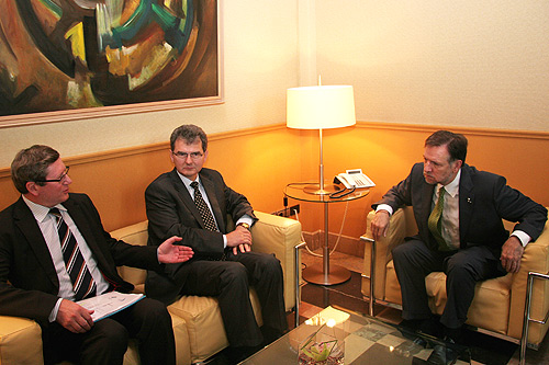 Marszałek Województwa Śląskiego Bogusław Śmigielski oraz wicemarszałek Zbyszek Zaborowski spotkali się w Saragossie z prezydentem Aragonii Marcelino Iglesias. Wymieniono się informacjami o potencjale regionów oraz możliwościami współpracy między Aragonią a Województwem Śląskim. Marcelino Iglesias interesował się kompetencjami polskich regionów oraz procesem decentralizacji. Podkreślał znaczenie zapisów konstytucyjnych w Hiszpanii, które zapewniają regionom dużą samodzielność. Gospodarza Aragonii interesowała także najnowsza historia Górnego Śląska. Bogusław Śmigielski mówił m.in. o znaczeniu promocji i zmianie wizerunku województwa.