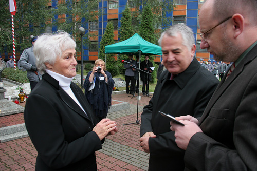 Uroczystość poprzedziła Msza Święta. Za pielęgnowanie pamięci o tragicznych losach policjantów pomordowanych w Miednoje, Twerze i innych dołach śmierci na terenie ZSRR „Odznakami Honorowymi za Zasługi dla Województwa Śląskiego” uhonorowani zostali: Ogólnopolskie Stowarzyszenie Rodzina Policyjna 1939 i jej prezes Maria Nowak oraz pośmiertnie Witold Banaś, pierwszy prezes stowarzyszenia. Odznaki wręczyli członek Zarządu Województwa Piotr Spyra i radny Sejmiku Województwa Śląskiego Marian Jarosz.
