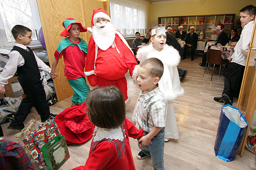 Mikołaje, czyli wicemarszałek Zbyszek Zaborowski i członek zarządu Mariusz Kleszczewski rozdawali dzieciom m.in. piłki, gry, buty sportowe, ubranka i słodycze.