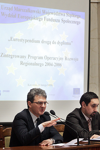Województwo Śląskie otrzymało dodatkowe 15 mln zł z Europejskiego Funduszu Społecznego. Wsparcie zostanie przeznaczone na realizację projektu wdrażanego przez Samorząd Województwa Śląskiego „Eurostypendium drogą do dyplomu” w ramach Zintegrowanego Programu Operacyjnego Rozwoju Regionalnego (ZPORR). Jego założenia zostały przedstawione przedstawicielom samorządów powiatów ziemskich i grodzkich przez marszałka Bogusława Śmigielskiego i ekspertów Wydziału Europejskiego Funduszu Społecznego Urzędu Marszałkowskiego.