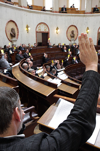 Radni podjęli uchwałę w sprawie podjęcia działań zmierzających do przekształcenia Wojewódzkich Zakładów Ortopedycznych w Bytomiu i Zakładów Naprawczych Sprzętu Medycznego w spółki prawa handlowego pracowników tych zakładów. Stwarza to możliwości rozwoju tych firm poprzez rozszerzenie dotychczasowej działalności. Za przekształceniem tych jednostek w spółki pracownicze przemawiają przesłanki prawne, ekonomiczne i społeczne, m.in.: ich dobra kondycja finansowa, brak zobowiązań i konieczności ich pokrycia przez organ założycielski, pozytywne opinie rad społecznych, pisemne poparcie związków zawodowych i opracowane plany dalszego rozwoju tych placówek. Przyjęto regulamin przyznawania stypendiów w ramach projektu „Eurostypendium drogą do dyplomu” w ramach Zintegrowanego Programu Operacyjnego Rozwoju Regionalnego. Celem programu stypendialnego jest wsparcie dla studentów pozostających w trudnej sytuacji materialnej, w rodzinach, w których dochód na głowę nie przekracza 504 zł netto lub 583 zł, jeśli w rodzinie jest dziecko niepełnosprawne. Program obejmuje obszary zmarginalizowane tj. obszary wiejskie (tereny położone poza granicami administracyjnymi miast), miasta do 20 tys. mieszkańców, zdegradowane dzielnice miast i obszarów poprzemysłowych oraz powojskowych wyznaczonych w Lokalnym Programie Rewitalizacji. Według szacunków wsparcie w wysokości ok. 350 zł miesięcznie może uzyskać od 6,5 do 9 tys. studentów. Sejmik wyraził zgodę na udzielenie pomocy finansowej w wysokości 400 tys. zł gminie Kuźnia Raciborska na wykonanie prac związanych z zadaniem „Południowo-Zachodni Szlak Cystersów”. Projekt ten realizowany jest w ramach Działania 6.4 „Inwestycje w projekty turystyczne o charakterze ponadregionalnym” Programu Operacyjnego Innowacyjna Gospodarka 2007 – 2013. Z inicjatywą szerszego niż dotychczas udostępnienia turystom szlaku Cystersów wystąpiło województwo dolnośląskie, do którego dołączyły: wielkopolskie, opolskie, śląskie i małopolskie. W naszym regionie znajduje się jeden obiekt związany z działalnością Cystersów. Jest to Zespół Klasztorno-Pałacowy wchodzący w skład Cysterskich Kompozycji Krajobrazowych Rud Wielkich. Prace obejmą m.in. : budowę parkingów, przygotowanie punktów informacji dla turystów, budowę międzyregionalnej sieci infokiosków informujących o wspólnym dziedzictwie kulturowym itp. Radni wysłuchali informacji na temat bezpieczeństwa publicznego w województwie śląskim. W minionym roku dokonano 153 tys. przestępstw, tj. o blisko 10 proc. mniej niż w 2007 roku. Wzrosła także ich wykrywalność. Dotyczy to niemal wszystkich kategorii przestępstw, przy czym wciąż na wysokim poziomie utrzymuje się udział nieletnich w ogólnej liczbie wykroczeń wobec prawa. Spada liczba wypadków drogowych, lecz niepokojąco wysoka i nadal rosnąca jest liczba zatrzymanych kierowców prowadzących pojazdy po spożyciu alkoholu. Województwo śląskie zajmuje pierwsze miejsce w kraju pod względem interwencji straży pożarnej. W minionym roku było ich 54 tys. Zmienia się ich charakter, coraz częściej strażacy służą pomocą specjalistyczną, a rzadziej interweniują przy pożarach. Informacje o bezpieczeństwie publicznym przedstawili: Komendant Wojewódzki Policji nadinsp. Dariusz Biel i Komendant Wojewódzki PSP st. bryg. Marek Rączka