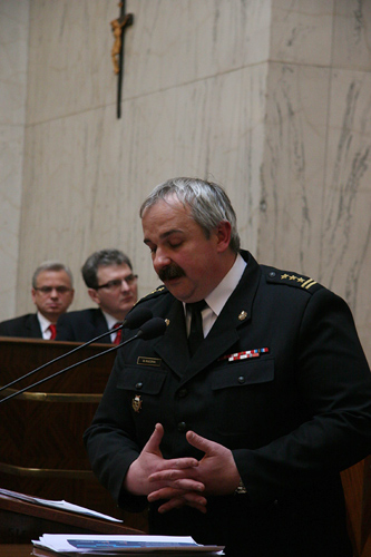 Podczas sesji mandat objął nowy radny - Krzysztof Rybka  Sytuację w województwie w zakresie bezpieczeństwa przeciwpożarowego omówił Komendant Wojewódzki PSP st. bryg. Marek Rączka