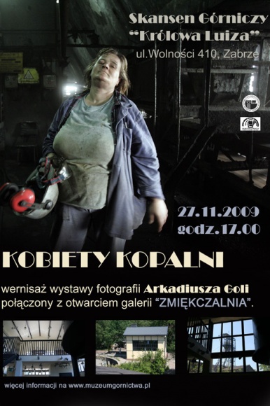 Otwarcie „Zmiękczalni" uświetni zwiastun wystawy „KOBIETY KOPALNI" prezentującej zdjęcia autorstwa Arkadiusza Goli. Wernisaż wystawy w pełnej odsłonie odbędzie się w gmachu Muzeum Górnictwa Węglowego 8 grudnia 2009 o godz.12:00.