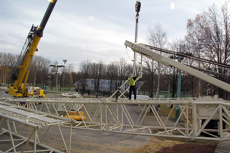 Zakończył się montaż najnowocześniejszego i jednego z największych dźwigów w Europie. „CC 2800" posłuży do montażu konstrukcji elementów ringu i zadaszenia dachu modernizowanego obiektu.