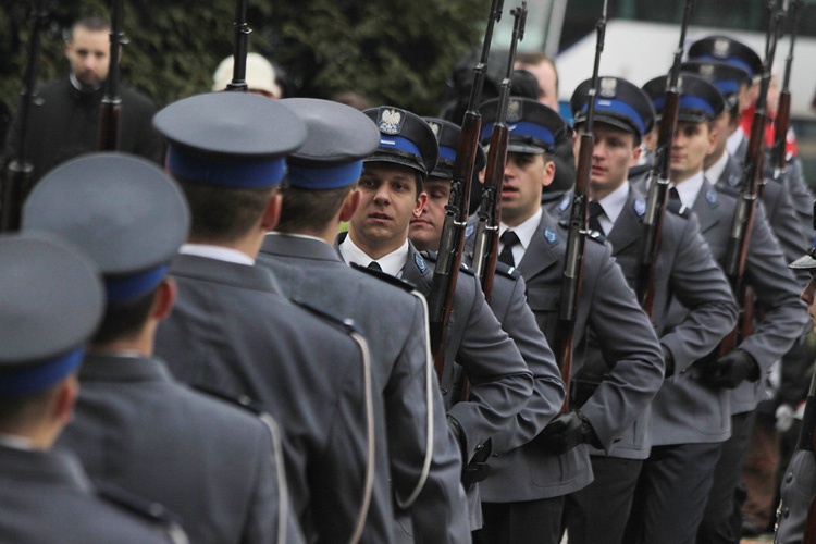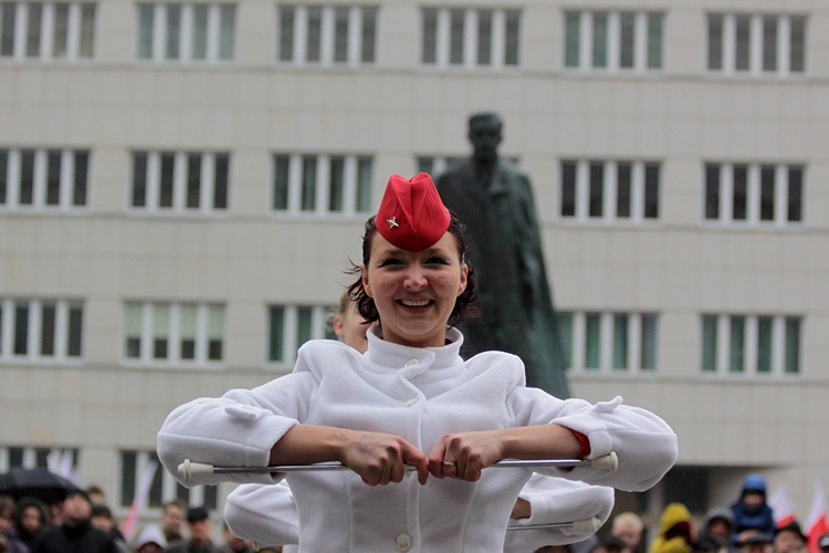Następnie odbyła się musztra paradna w wykonaniu oddziału prewencji policji oraz pokaz mażoretek - młodych dziewczyn ubranych w paradne stroje zawierające elementy umundurowania galowego różnych służb i formacji - z Domu Kultury Ligota. To tam również uroczyście defilowały kompanie honorowe i bractwa kurkowe. Mocnym akcentem uroczystości był pokaz musztry paradnej w wykonaniu policjantów.