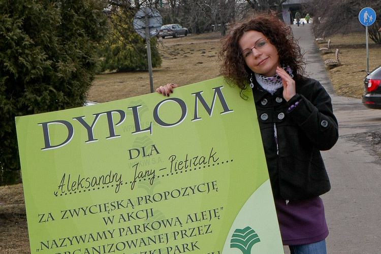 Autorem zwycięskiej propozycji jest Aleksandra Jany-Pietrzak. „To było pierwsze skojarzenie - mówi zwyciężczyni. - Przecież ta aleja biegnie przez Dużą Łąkę. Cieszę się, że wzięłam udział w tej akcji i udało mi się wygrać, tym bardziej, że kiedy tylko mam czas, chętnie po parku spaceruję".
