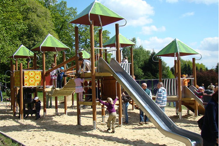 Plac dla najmłodszych gości znajduje się na łące tuż obok pawilonu słoni oraz wejścia do Kotliny Dinozaurów. Wykonany z drewna, niezwykle barwny zestaw przejść, kładek, tuneli, zjeżdżalni i innych instalacji z pewnością będzie dla dzieci dużą atrakcją, a ich pokonanie dostarczy im wiele radości. Zabawa na urządzeniach jest swoistego rodzaju relaksem nie tylko dla dzieci, ale także dla rodziców po przejściu prawie 4-kilometrowej ścieżki dydaktycznej w Ogrodzie.
