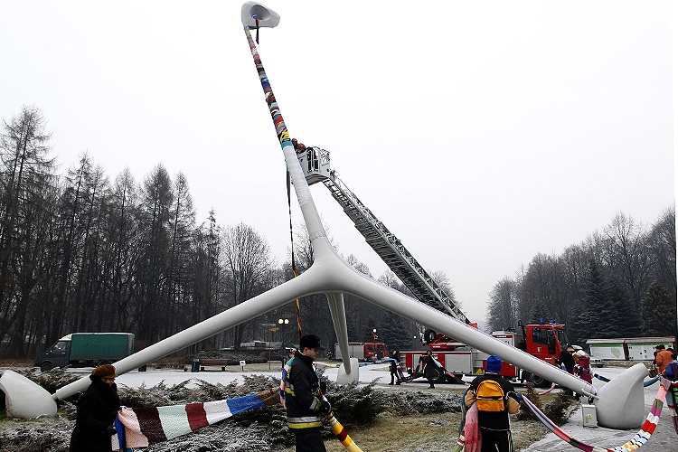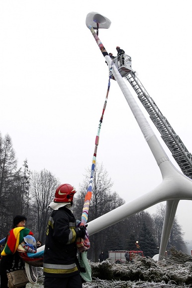 Przy wsparciu chorzowskich strażaków postument zyskał szalik, który przez najbliższe dni będzie dogrzewał jeden z symboli parkowych.