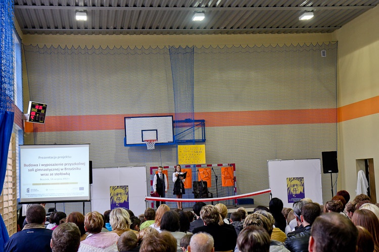 W ramach projektu pn. „Budowa i wyposażenie przyszkolnej sali gimnastycznej w Brzuśniku wraz ze stołówką”, zbudowano i wyposażono obiekt o powierzchni blisko 1 tys. m2 w którym oprócz sali sportowej z zapleczem sanitarnym znajdują się też: stołówka, zaplecze społeczno-edukacyjne i przewiązka łącząca budynek szkoły z salą sportową. Sala gimnastyczna wraz z przebieralnią, umywalnią, pokojem instruktora wychowania fizycznego, magazynem sprzętu sportowego i szatnią z łazienką dla osób niepełnosprawnych, a także salami lekcyjnymi i pomieszczeniami do zajęć pozalekcyjnych została wyposażona w nowoczesny sprzęt i służyć będzie przede wszystkim dzieciom i młodzieży szkolnej w ramach zajęć z wychowania fizycznego i zajęć pozalekcyjnych. Obiekt będzie również udostępniany dla różnych form aktywności sportowo-rekreacyjnej po godzinach lekcyjnych.