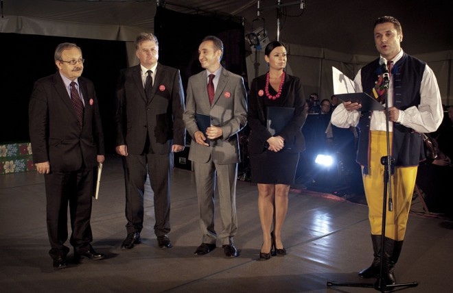 Owacją na stojąco publiczność dziękowała Zespołowi „Śląsk" za wspaniały koncert. „Jak ktoś kiedyś zauważył - Zespół „Śląsk" jest milionerem braw. Dzięki Państwu nie mamy dziś wątpliwości, że tak właśnie jest" - powiedział Dyrektor Zbigniew Cierniak. „Ta wspaniała kondycja Zespołu jest możliwa dzięki wsparciu Urzędu Marszałkowskiego Województwa Śląskiego, za co dziś symbolicznie pragniemy podziękować wręczając pani marszałek w prezencie od Zespołu strój śląski" - dodał Dyrektor. Przyjmując podarunek, Aleksandra Gajewska-Przydryga zapewniła, że w tym stroju będzie ambasadorem „Śląska", tak jak Zespół jest ambasadorem kultury w Polsce i na świecie.