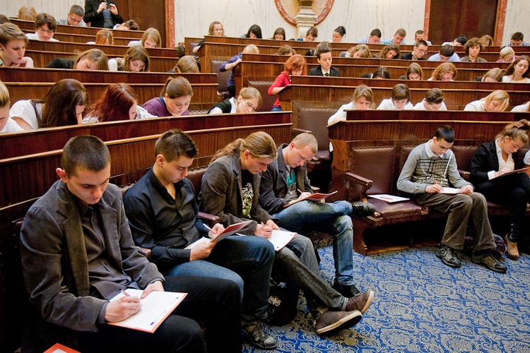 W Sali Sejmu Śląskiego młodzież zmierzyła się z zawiłościami ortografii. Zadanie polegało na napisaniu w języku polskim dyktanda o tematyce unijnej.