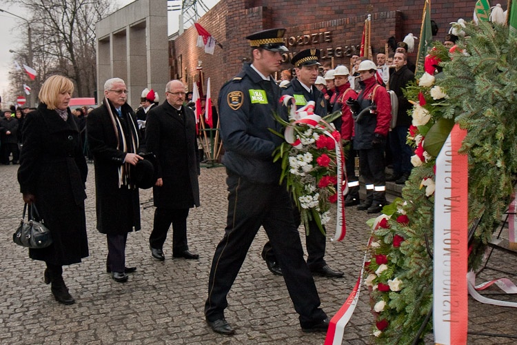 Wieńce złożyli m.in. przedstawiciel Prezydenta RP minister Sławomir Rybicki oraz minister pracy i polityki społecznej Władysław Kosiniak-Kamysz. Hołd poległym oddali przedstawiciele władz wojewódzkich na czele z członkiem Zarządu Aleksandrą Banasiak i przewodniczącym Sejmiku Województwa Śląskiego Andrzejem Gościniakiem. Pod pomnikiem kwiaty złożyli także Wojewoda Śląski Zygmunt Łukaszczyk, prezydent Katowic Piotr Uszok, parlamentarzyści i radni wojewódzcy.