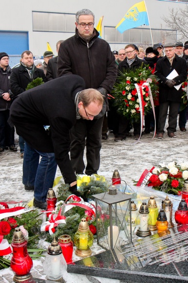 Członek Zarządu Jerzy Gorzelik złożył kwiaty i zapalił znicze pod bramą - pomnikiem dawnego obozu Zgoda. „Wierna swym wolnościowym tradycjom Polsko, przyjmij wszystkich synów ziemi bez względu na różnice języka i wiary i daj świadectwo wielkiej prawdzie, że w nowoczesnym państwie jest miejsce dla ludzi różnych języków i wyznań i ich wspólnej pracy dla dobra ludzkości" - przypomniał słowa Wojciech Korfantego.