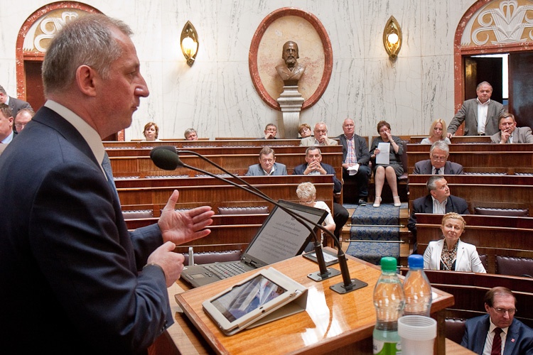 „Temat ochrony zdrowia zawsze budzi kontrowersje. Jest to widoczne zwłaszcza na Śląsku. Samorząd województwa śląskiego jest największym w Polsce właścicielem jednostek ochrony zdrowia" - mówił gość sesji Sławomir Neumann, Sekretarz Stanu w Ministerstwie Zdrowia. „Jesteśmy w trakcie debaty o polityce zdrowotnej w kontekście ustawy o działalności leczniczej. Nie zakładamy w niej jednak żadnych zmian dotyczących przekształceń jednostek. Debatujemy także o zmianach w Narodowym Funduszu Zdrowia. Naszym głównym zadaniem będzie decentralizacja funduszu i zwiększenie wpływu samorządów na wydatkowanie środków" - kontynuował Sławomir Neumann.