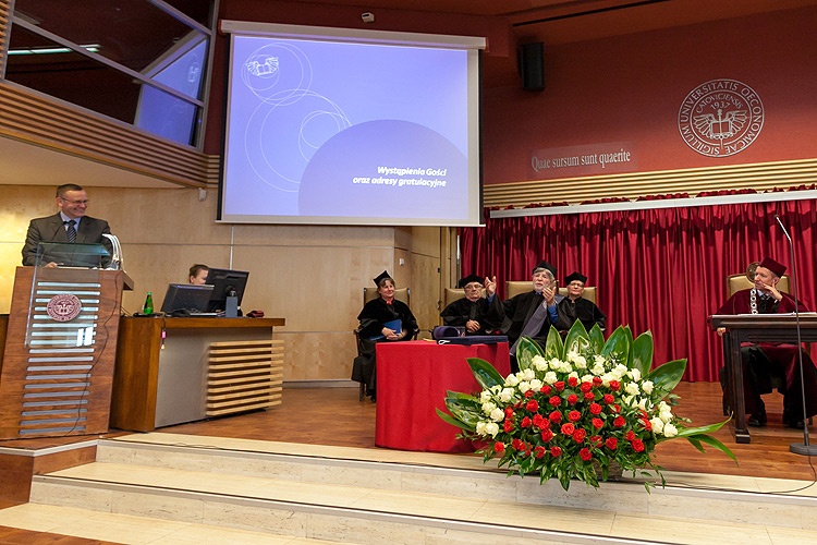 W samo południe w auli Uniwersytetu Ekonomicznego w Katowicach rozpoczęła się uroczystość nadania doktoratu honorowego prof. Szewachowi Weissowi. W wydarzeniu uczestniczył Marszałek Województwa Śląskiego Mirosław Sekuła oraz Przewodniczący Sejmiku Andrzej Gościniak.