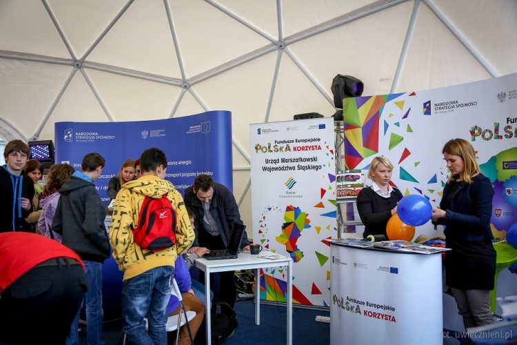 W trzeciej z kopuł Centrum Nauki „Kopernik" z Warszawy przeprowadzało ciekawe doświadczenia fizyczne. Tam też można było odwiedzić stoisko Funduszy Europejskich w województwie śląskim, które przygotowały Wydziały Urzędu Marszałkowskiego Województwa Śląskiego: Rozwoju Regionalnego oraz Europejskiego Funduszu Społecznego. Oprócz udziału w grze elektronicznej „Ruszaj Po eurO" odwiedzający mogli zrobić sobie zdjęcie w fotostandzie Regionalnego Programu Operacyjnego Województwa Śląskiego oraz spotkać się z EFESiem - maskotką śląskiego Europejskiego Funduszu Społecznego. Przygotowano również materiały informacyjno-promocyjne. Wokół kopuł natomiast rozstawiono wystawę z prezentacją najciekawszych projektów unijnych z regionu.
