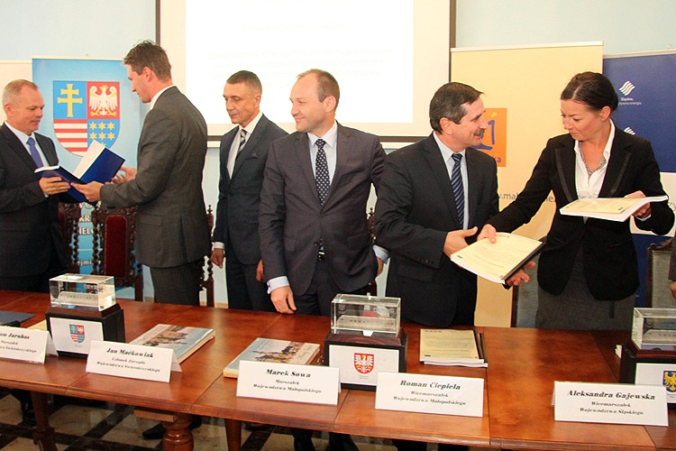 W Chęcinach w województwie świętokrzyskim w imieniu Województwa Śląskiego umowę podpisali wicemarszałek Aleksandra Gajewska oraz członek Zarządu Województwa Stanisław Dąbrowa.