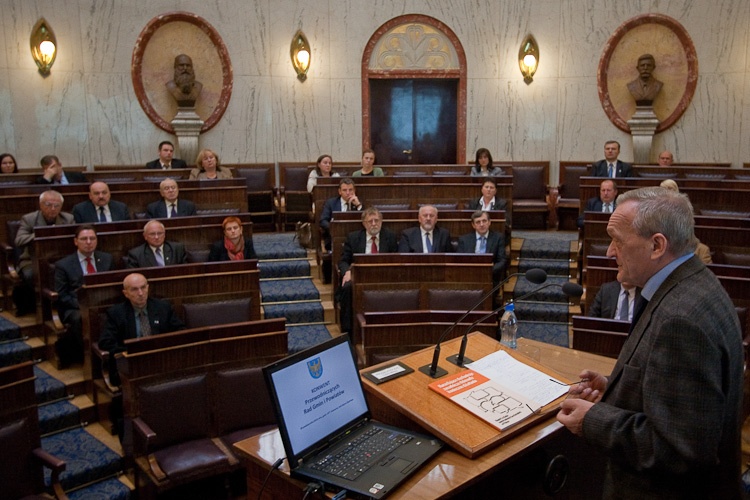 „Ta ustawa ma stanowić rzeczywisty postęp, ułatwienie w realizacji działań samorządowych. Jej celem jest realizacja trzech głównych zadań. Pierwszym jest zorganizowanie i uporządkowanie udziału obywateli w pracy samorządu, gdyż tylko wtedy ta praca ma sens. Drugim jest wsparcie, zachęcenie samorządów do współpracy między sobą na różnym szczeblu, stworzenie mechanizmu współdziałania. Trzecie zadanie to ograniczenie barier, które narosły w przepisach i interpretacji prawa" - podkreślił Jerzy Regulski.