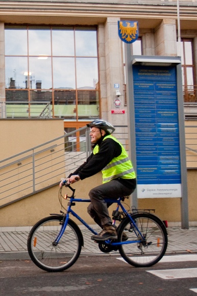 Promując tego typu sposób komunikacji przypomniał jednocześnie o tym, by decydując się na jazdę rowerem nie zapominać o bezpieczeństwie. „Każdy z rowerzystów powinien zakładać kamizelkę odblaskową" - tłumaczył.