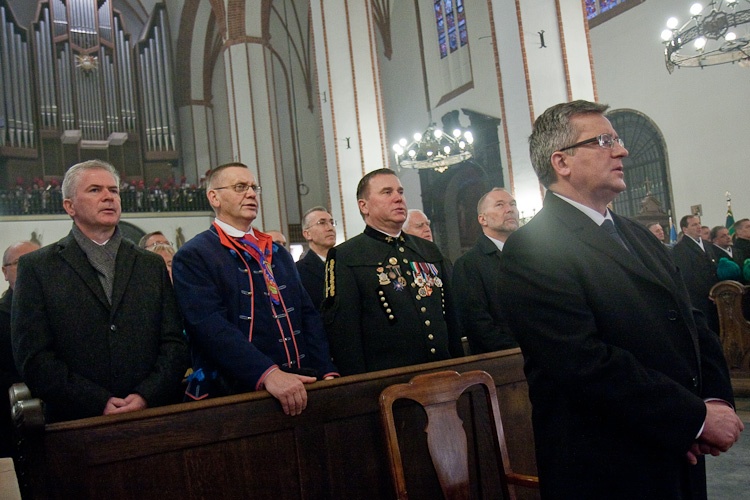 Świętowanie Dnia Górnika rozpoczęto w warszawskiej Bazylice Archikatedralnej św. Jana Chrzciciela, gdzie została odprawiona msza św., której uczestniczył Bronisław Komorowski. Homilię wygłosił metropolita katowicki abp. Wiktor Skworc, który mówił: "Dziś na zaproszenie prezydenta RP modlimy się w Warszawie za górników i z górnikami. Modlimy się o Boże błogosławieństwo dla waszej górniczej pracy, która z natury swej jest trudna, bo jest ona zmaganiem się człowieka z żywiołami, a te zawsze są nieobliczalne. Modlimy się wspólnie o stabilizację w górniczej branży, która daje pokój i poczucie bezpieczeństwa. [...] chcemy się modlić razem z żywymi i za żywych, ale pamiętając szczególnie za zmarłych, zwłaszcza o wszystkich ofiarach górniczej pracy"