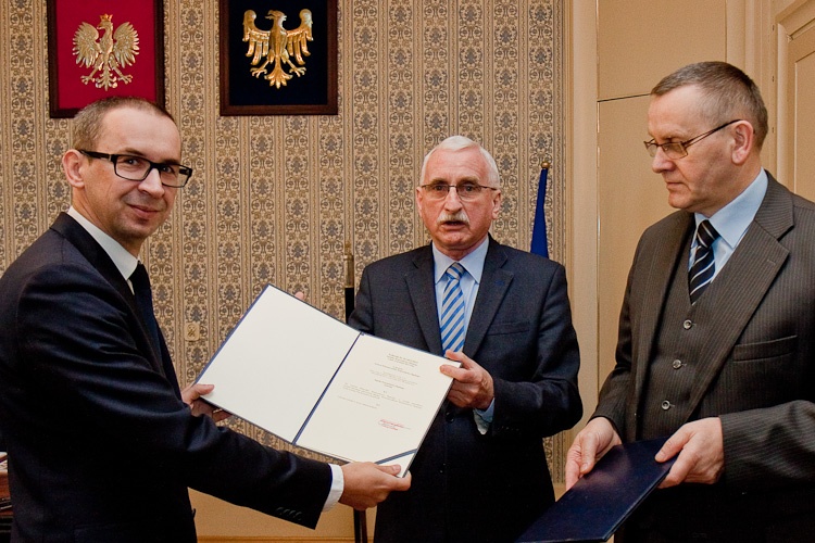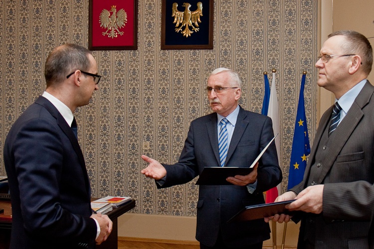 Nowy wicemarszałek otrzymał okolicznościową uchwałę z rąk Przewodniczącego Sejmiku, Andrzeja Gościniaka. Marszałek Mirosław Sekuła wręczył przygotowaną na tej podstawie umowę o pracę. W spotkaniu uczestniczył ponadto Sekretarz Województwa, Krzysztof Dzierwa.