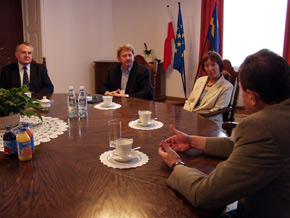 Podczas rozmowy, w której uczestniczyła także Łucja Ginko, dyrektor Wydziału Kultury Urzędu Marszałowskiego, poruszono szereg zagadnień dotyczących przyszłości teatru oraz problemów związanych z zapewnieniem warunków funkcjonowania placówki w obecnych realiach ekonomicznych.