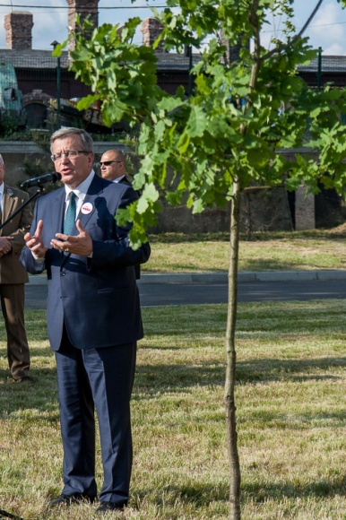 "Jest mi bardzo miło, że mogę wraz z władzami województwa, przedstawicielami społeczności Katowic i Śląska zasadzić dąb w 25 rocznicę odzyskania przez Polskę wolności. Jestem przekonany, że sadzimy ten dąb z myślą o przyszłości Śląska, która jest przyszłością dobrą, a będzie bardzo dobrą, jeśli będzie wypełniona naszą wspólną pracą. Cieszę się, że mogę to zrobić w tak niezwykłym miejscu - Muzeum Śląskim, które jest symbolem śląskości i symbolem polskości na Śląsku. Jestem pewien, że to miejsce będzie służyło wielu dobrym sprawom. Tak jak jest i zawsze będzie troską zachowanie polskości na Śląsku, tak wielkim wyzwaniem dla nas jest to, by jak najwięcej śląskości było w Polsce" - powiedział Prezydent RP.