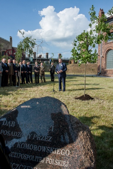 "Jest mi bardzo miło, że mogę wraz z władzami województwa, przedstawicielami społeczności Katowic i Śląska zasadzić dąb w 25 rocznicę odzyskania przez Polskę wolności. Jestem przekonany, że sadzimy ten dąb z myślą o przyszłości Śląska, która jest przyszłością dobrą, a będzie bardzo dobrą, jeśli będzie wypełniona naszą wspólną pracą. Cieszę się, że mogę to zrobić w tak niezwykłym miejscu - Muzeum Śląskim, które jest symbolem śląskości i symbolem polskości na Śląsku. Jestem pewien, że to miejsce będzie służyło wielu dobrym sprawom. Tak jak jest i zawsze będzie troską zachowanie polskości na Śląsku, tak wielkim wyzwaniem dla nas jest to, by jak najwięcej śląskości było w Polsce" - powiedział Prezydent RP.