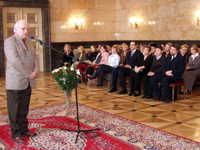 Tradycyjne ślubowanie  Akty nadania stopnia nauczyciela mianowanego wręczył Wicemarszałek Województwa Śląskiego Sergiusz Karpiński  Uroczystść odbyła się w Sali Marmurowej Gmachu Sejmu Śląskiego  Podziękowania w imieniu mianowanych, na zdjęciu Karol Bresler.