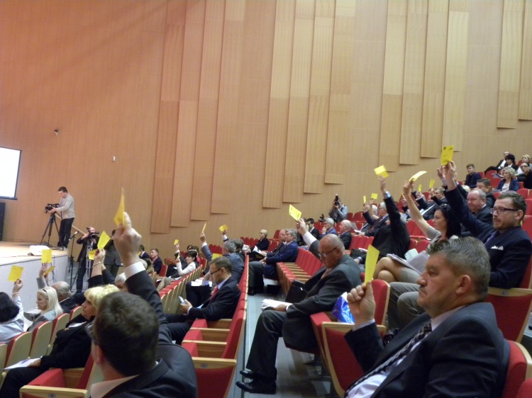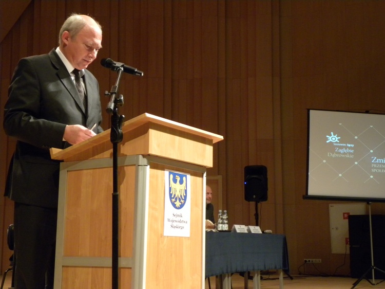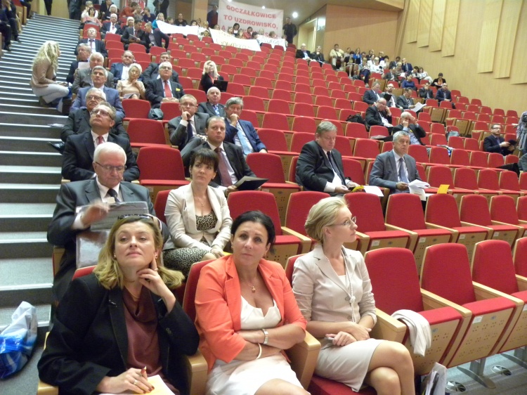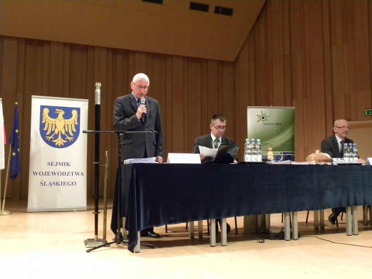 Po przyjęciu porządku obrad prowadzący oddał głos prezydentowi Sosnowca Kazimierzowi Górskiemu, który w prezentacji „Sosnowiec łączy” przedstawił problemy i osiągnięcia stolicy Zagłębia. Prezydent K. Górski zwrócił uwagę na trudności związane z likwidacją kopalń węgla kamiennego oraz głęboką restrukturyzację przemysłu. „Spowodowało to tak głęboki kryzys w mieście i okolicy, że niektórzy eksperci przewidywali, że ludność Sosnowca może spaść nawet do 80 tys.”. Obawy na szczęście były na wyrost. Dziś miasto najgorsze ma już za sobą. Nawet sceptycy widzą, że jest coraz więcej nowych inwestycji. Rozwija się szkolnictwo wyższe, powstają nowe inwestycje, w tym także w Sosnowiecko-Dąbrowskiej Podstrefie Katowickiej Specjalnej Strefy Ekonomicznej. Budowane są nowe drogi, obiekty sportowe, mieszkania. Przykładem inwestycji zrealizowanych z pomocą funduszy unijnych jest także wspaniały obiekt, w którym obradowali radni województwa.
