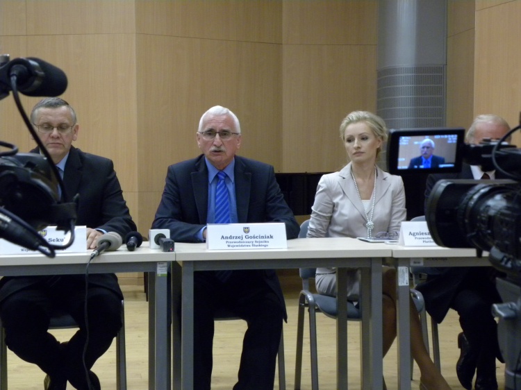 W przerwie obrad odbyła się konferencja prasowa, w której uczestniczyli Gospodarze Miasta Sosnowiec, Marszalek Mirosław Sekuła, Przewodniczący Sejmiku Andrzej Gościniak, przewodniczący klubów radnych oraz goście z Ukrainy i przedstawiciele mediów.