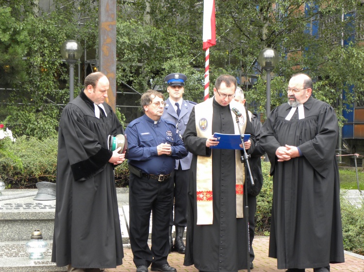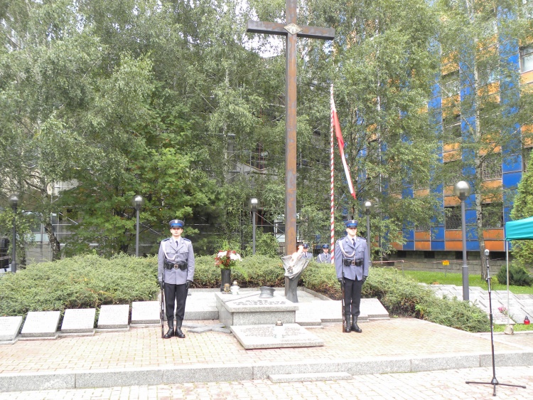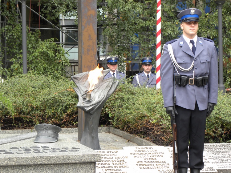 Po mszy zebrani i goście w towarzystwie orkiestry policyjnej przeszli pod usytuowany w pobliżu Komendy Wojewódzkiej Policji w Katowicach Grób Policjanta Polskiego. Tu odbyła się ceremonia upamiętniająca poległych i pomordowanych policjantów. Kapelani policyjni odmówili modlitwę za dusze poległych policjantów. Potem odbył się apel poległych zakończony salwą honorową.