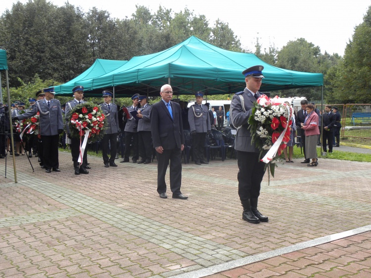 Uroczystość zakończyło złożenie wieńców i wiązanek kwiatów pod pomnikiem. W imieniu Marszalka Mirosława Sekuły i radnych województwa wieniec złożył Andrzej Gościniak Przewodniczący Sejmiku Śląskiego. Po uroczystości był czas na spotkania i wspomnienia przybyłych z całej Polski kombatantów i członków Stowarzyszenia "Rodzina Policyjna 1939."