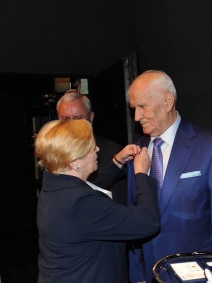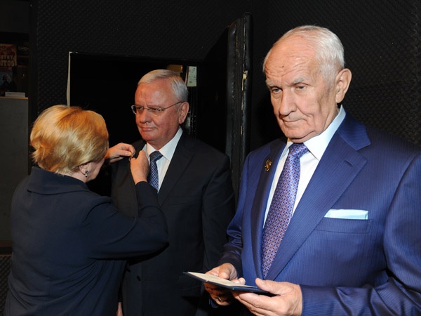 Po spektaklu Przewodnicząca Kapituły, radna województwa prof. Lutgarda Buzek wręczyła Złote Odznaki za Zasługi dla Województwa Śląskiego Tadeuszowi Łapińskiemu i Jerzemu Rzyskiemu - Mecenasom Teatru.