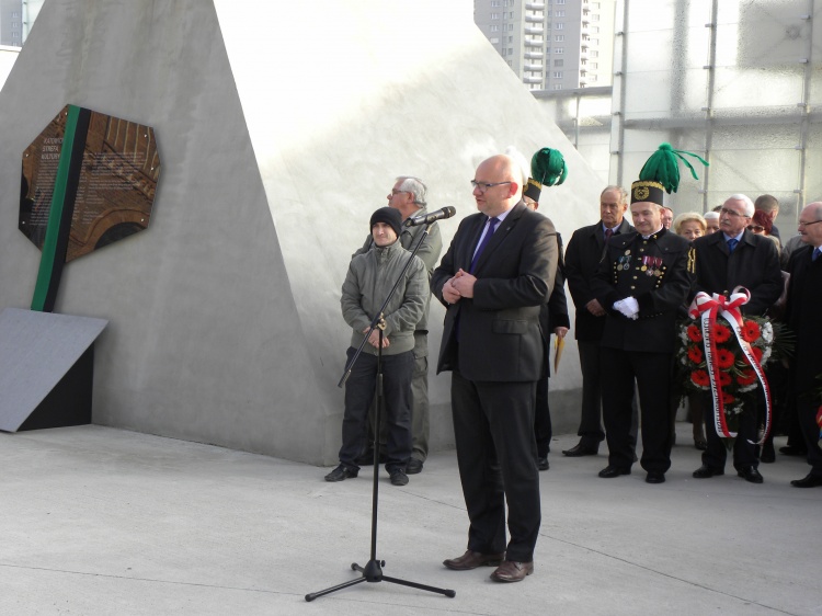 Odsłonięcia tablicy okrytej górniczą flagą, dokonał Jerzy Mańka, Wiceprezes Bractwa Gwarków.
