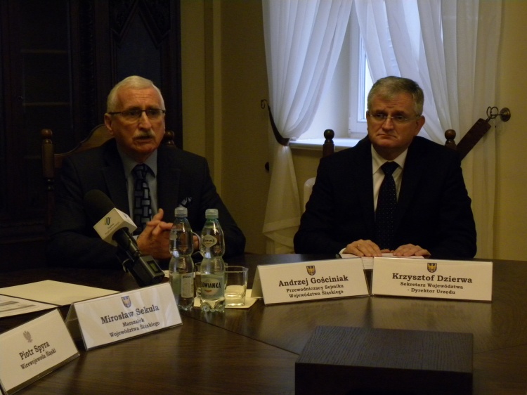 Marszałek Mirosław Sekuła i Andrzej Gościniak zgodnie podkreślali dobrą wolę i współpracę Wojewody Śląskiego, który jest obecnie, co paradoksalne, właścicielem Urzędu wybudowanego w międzywojniu za pieniądze pochodzące ze Skarbu Śląskiego. Do tych kwestii ustosunkował się Wicewojewoda Śląski Piotr Spyra.